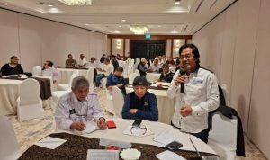 Keterangan Gambar: Ketua SMSI Sulawesi Selatan, Anwar Sanusi (berdiri, memegang mikrofon), saat