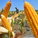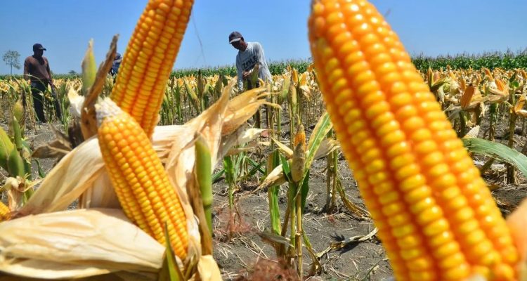 Keterangan Gambar: Petani memanen jagung di lahan pertanian sebagai bagian dari program