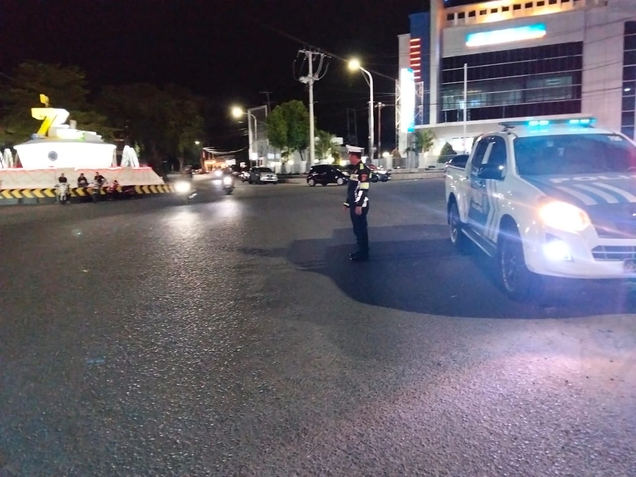 Sejak pukul 21.00 WITA, personel kepolisian itu berkeliling di titik-titik rawan pelanggaran dan kecelakaan lalu lintas (Laka Lantas). Di setiap perempatan, di sepanjang jalan utama, mereka memastikan arus lalu lintas tetap tertib dan lancar.