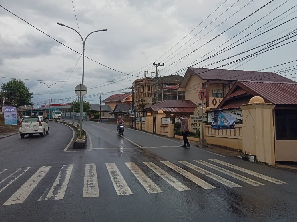 Personel Polsek Lalabata berdiri di tengah jalan basah, mengatur arus kendaraan dan memastikan warga memulai hari dengan aman. Komitmen senyap mereka menjadi bagian penting dari ritme pagi di Kecamatan Lalabata, Soppeng.