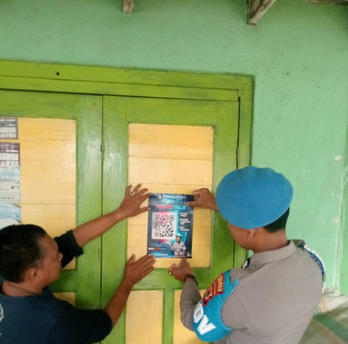 SOPPENG, SULSEL — Pada sebuah pagi yang teduh di Lilirilau, aroma aktivitas warga berbaur dengan langkah pasti dua orang petugas yang berhenti di depan sebuah pintu kayu berwarna hijau kekuningan. Dengan hati-hati, mereka menempelkan sebuah stiker berukuran sedang—bukan sekadar kertas bergambar, tetapi sebuah jendela kecil menuju pelayanan kepolisian yang lebih terbuka dan mudah dijangkau. Di balik kotak hitam-putih itu, tersimpan harapan baru: suara masyarakat dapat mengalir lebih cepat, lebih jernih, dan tanpa hambatan.