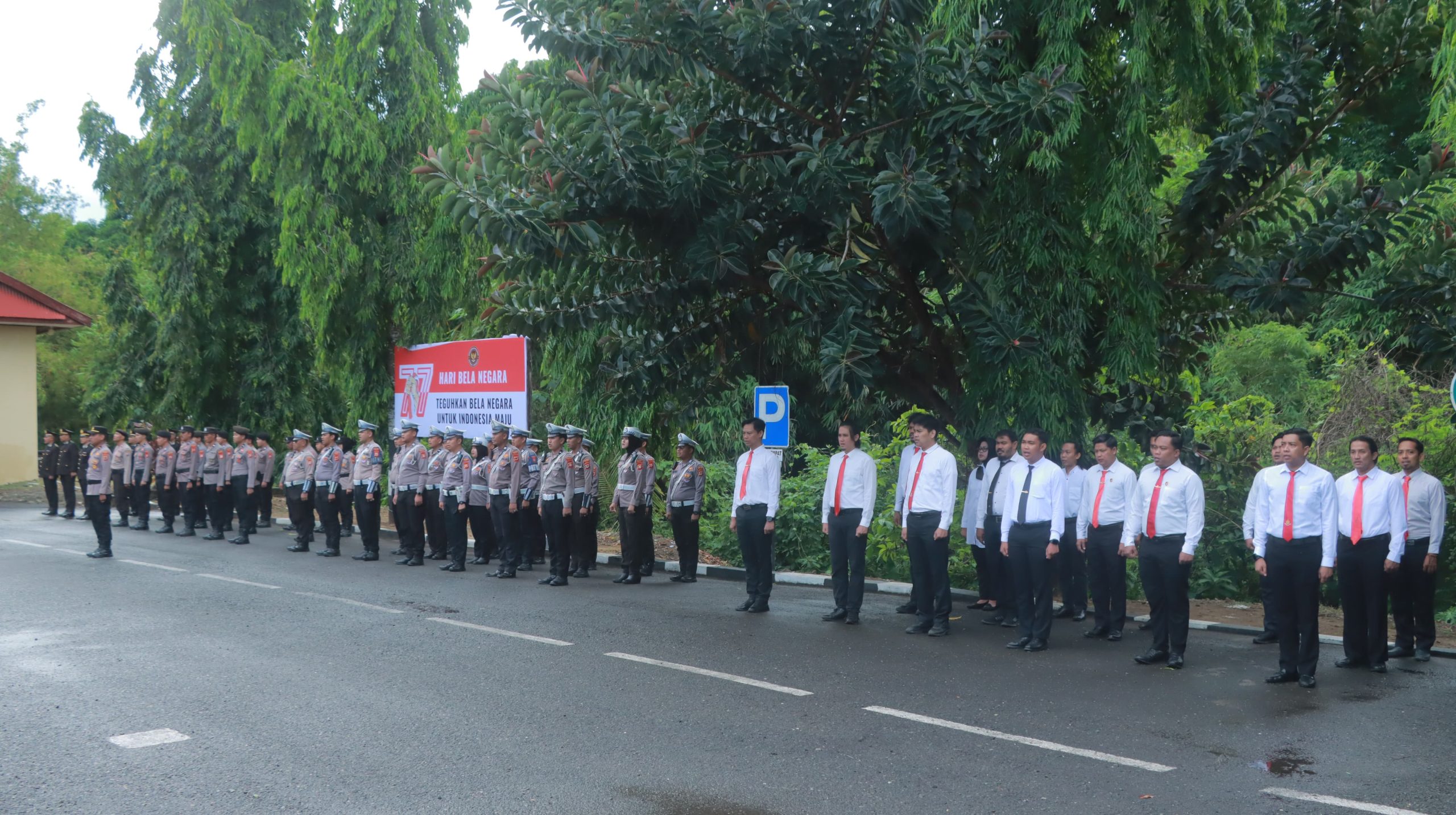 Seremoni Hari Bela Negara di tingkat lokal: simbol kesetiaan negara dipertontonkan, sementara makna bela negara diuji dalam praktik keadilan sehari-hari.