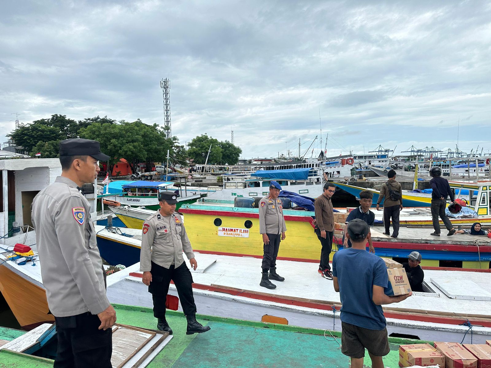 MAKASSAR – Pagi itu, angin laut bertiup pelan di Pelabuhan Paotere. Deretan perahu kayu berwarna cerah berjejal di dermaga, menjadi saksi denyut kehidupan masyarakat pulau yang menggantungkan harapan pada laut. Di antara lalu-lalang penumpang dan tumpukan logistik, beberapa polisi berseragam abu-abu menyusuri dek kapal, menyapa, mengingatkan, dan mendengar.
