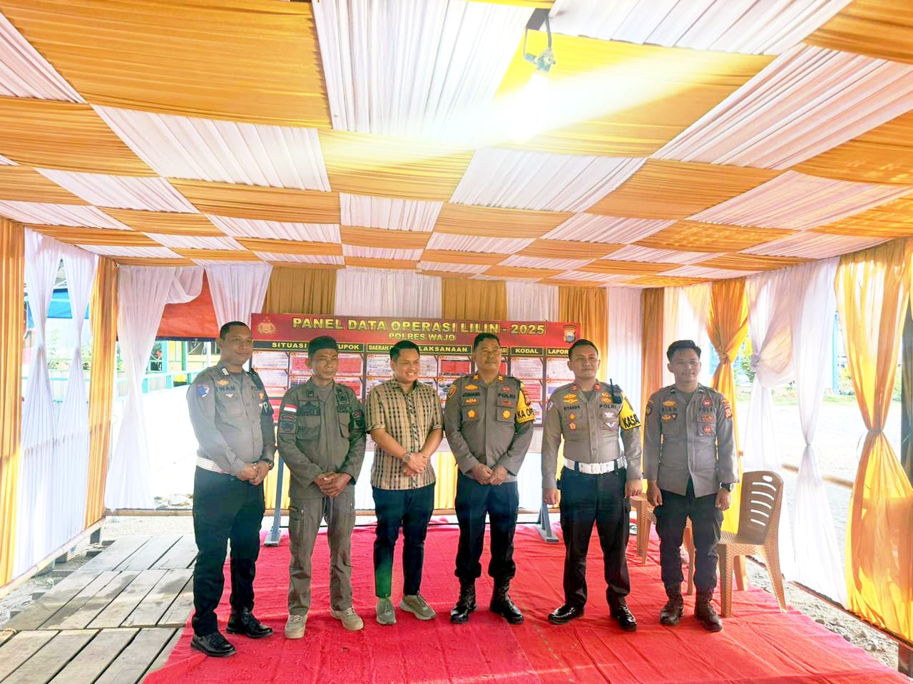 Kasat Lantas Polres Wajo AKP Riyanda P. Utama bersama Wakil Ketua DPRD Provinsi Sulsel Sufriadi Arif dan unsur TNI–Polri saat meninjau kesiapan Pos Pengamanan Terpadu Operasi Lilin Nataru 2025 di wilayah Kabupaten Wajo.: