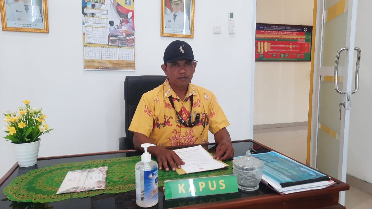 Kepala Puskesmas Goarie, Sabirin, S.Km, di ruang kerjanya. Di tengah keterbatasan sarana air bersih, Puskesmas Goarie tetap menjadi tumpuan layanan kesehatan bagi warga Desa Marioritengnga dan Goarie, Kabupaten Soppeng