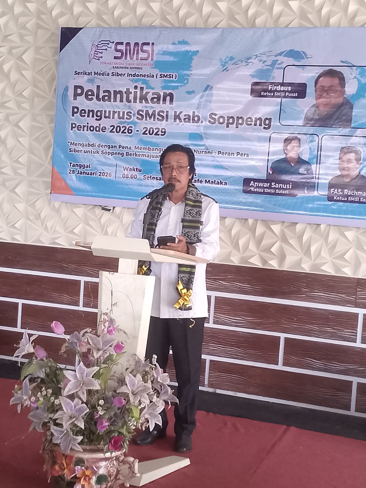Ketua SMSI Kabupaten Soppeng, FAS Rachmat Kami, dalam pidatonya menegaskan bahwa kepengurusan periode ini memilih berpijak pada falsafah luhur Bugis: Siri’ na Pacce.