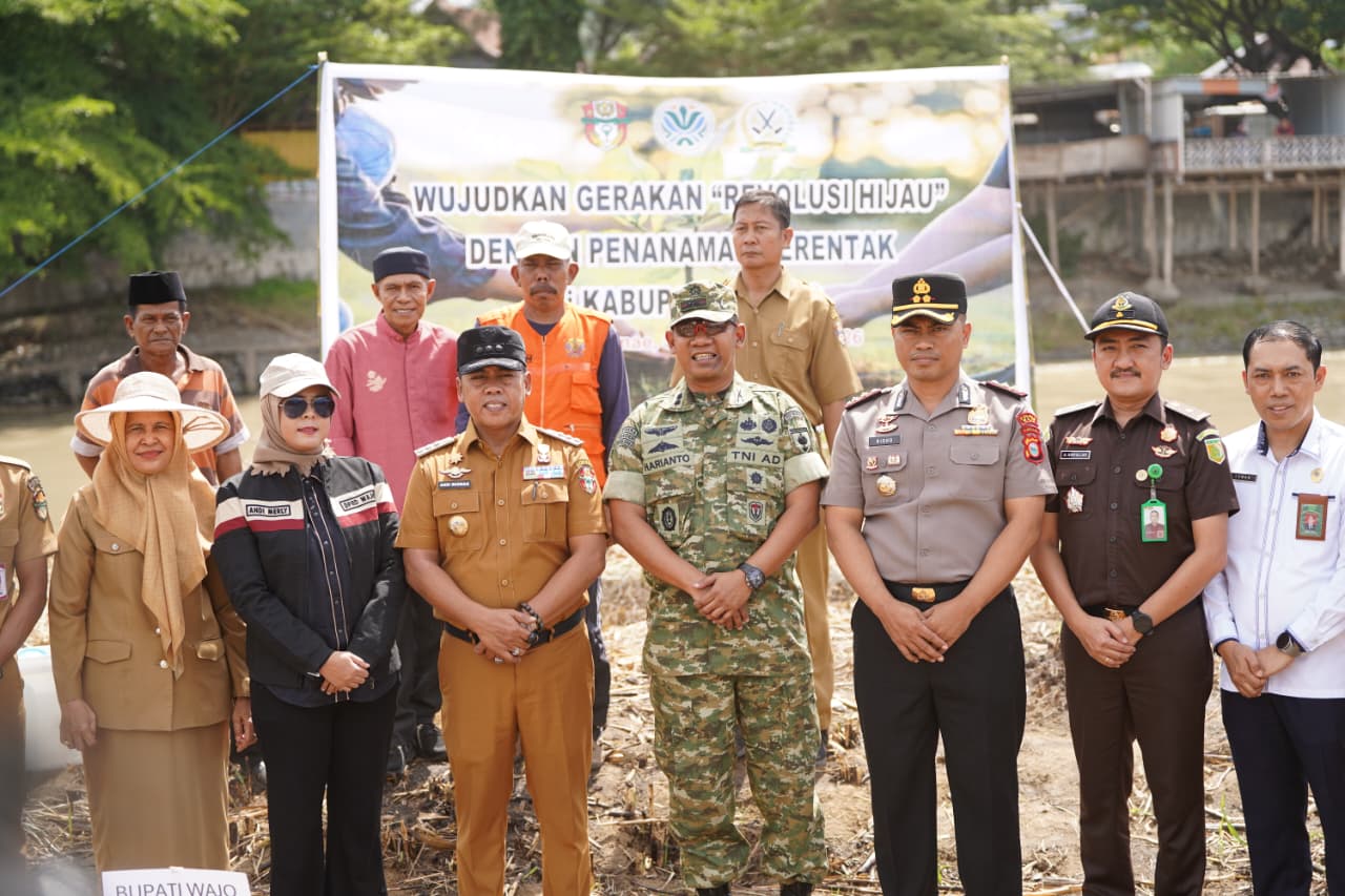 Pejabat daerah dan unsur Forkopimda Kabupaten Wajo saat kegiatan penanaman pohon dalam Gerakan Revolusi Hijau di Kelurahan Wiringpellannae. Aksi simbolik ini menuntut pembuktian kebijakan agar tak berhenti sebagai seremoni lingkungan. (Foto: Istimewa)