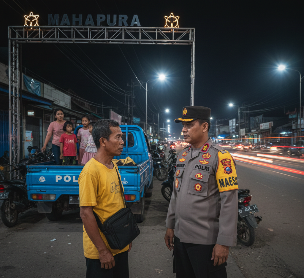 Di bawah temaram lampu pertokoan, dialog-dialog kecil tercipta. Petugas berhenti sejenak, menyapa para pelayan fasilitas publik dan penjaga malam dengan senyum yang tulus. Ada pesan-pesan keamanan yang disampaikan dengan nada bicara yang rendah namun sarat akan makna: