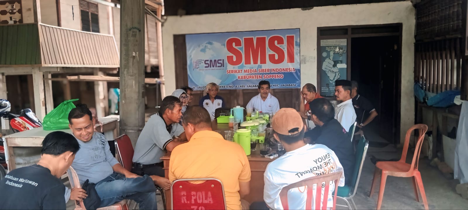 Ketua SMSI Kabupaten Soppeng, FAS Rachmat Kami, memimpin rapat pemantapan pelantikan pengurus SMSI periode 2026–2029 di Sekretariat SMSI Soppeng. Suasana berlangsung khidmat, penuh nilai kebersamaan dan pengabdian.