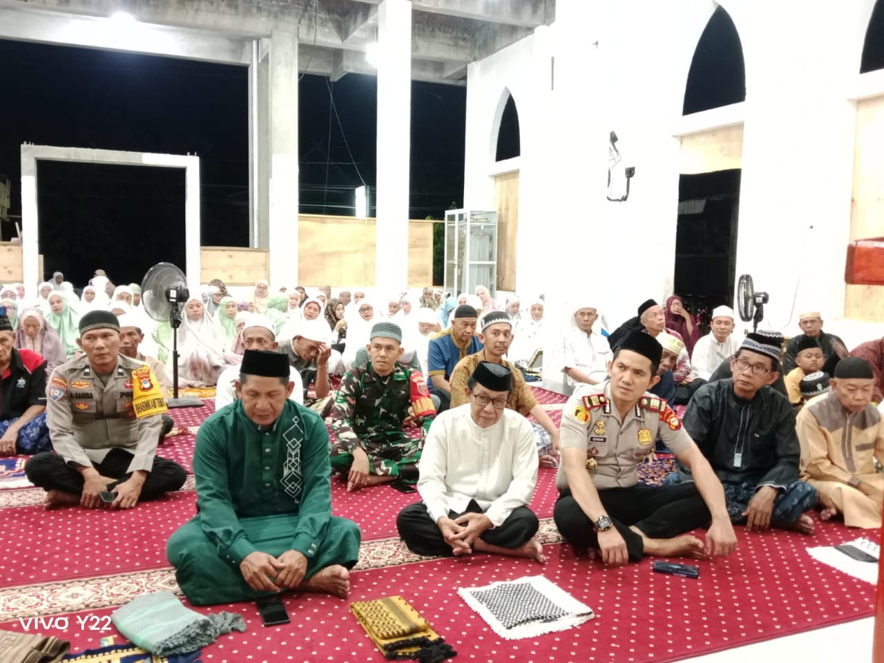 Di tengah barisan jamaah yang bersimpuh takzim, terselip siluet seragam cokelat yang tampak menyatu dengan warna-warni baju koko warga. Ia adalah Kapolsek Marioriawa, AKP Ichsan, S.H., M.M. Malam itu, ia melepas sejenak atribut kewibawaannya untuk duduk bersila, lutut bertemu lutut dengan warga, merajut kembali tali silaturahmi yang barangkali sempat renggang oleh hiruk-pikuk duniawi.