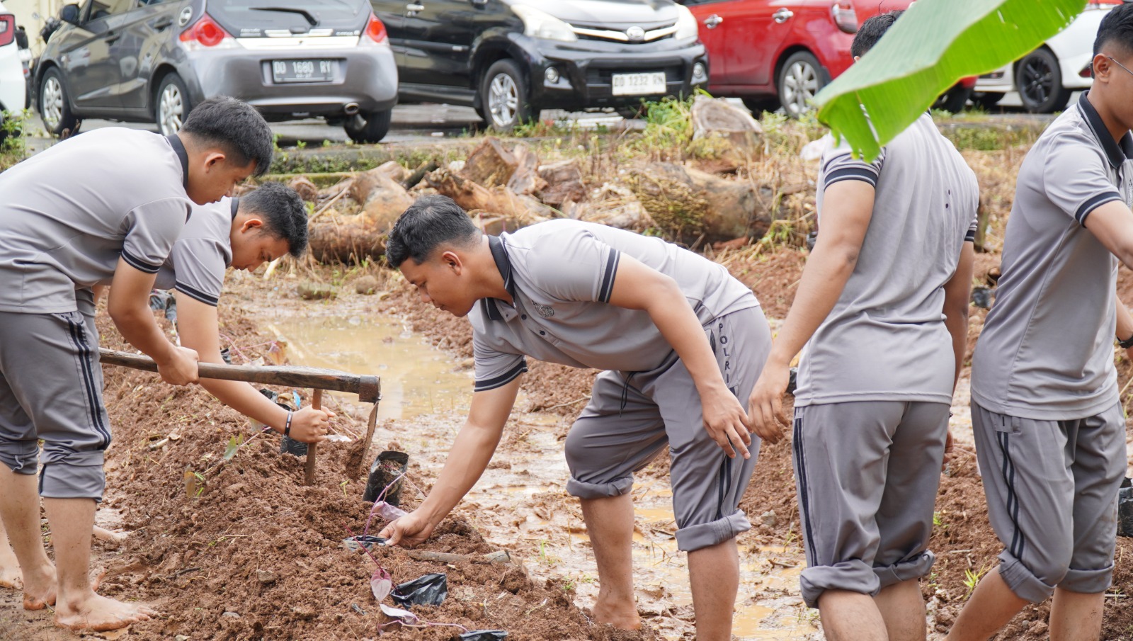 Tanah yang basah itu tak berbicara. Namun pagi di depan Rusunawa Polda Sulawesi Selatan, Selasa (3/2/2026), ia menyimpan isyarat tentang masa depan. Di sela lumpur dan sisa hujan, tangan-tangan berseragam abu-abu menanam umbi demi umbi. Uwi ungu, umbi lokal yang lama terpinggirkan, kini diturunkan kembali ke tanah, bukan sekadar sebagai tanaman, melainkan sebagai harapan akan kedaulatan pangan.