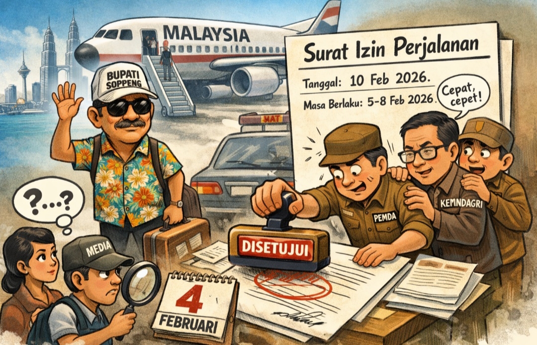 Polemik perjalanan luar negeri Bupati di Kabupaten Soppeng seharusnya sederhana: ada aturan, ada prosedur, ada kepatuhan. Namun ketika dokumen izin justru terbit setelah isu perjalanan mencuat ke publik, kesederhanaan itu berubah menjadi tanda tanya yang sulit diabaikan.