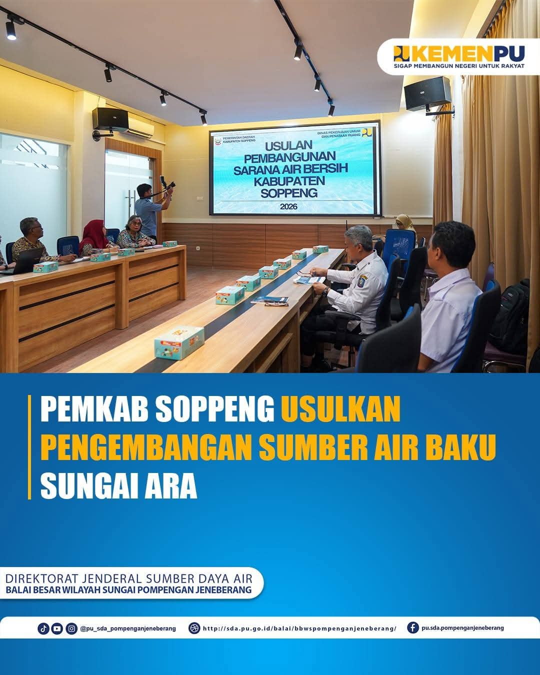 Audiensi Pemerintah Kabupaten Soppeng bersama jajaran BBWS Pompengan Jeneberang di Makassar membahas rencana pengembangan sumber air baku Sungai Ara sebagai langkah strategis pemenuhan kebutuhan air bersih masyarakat.