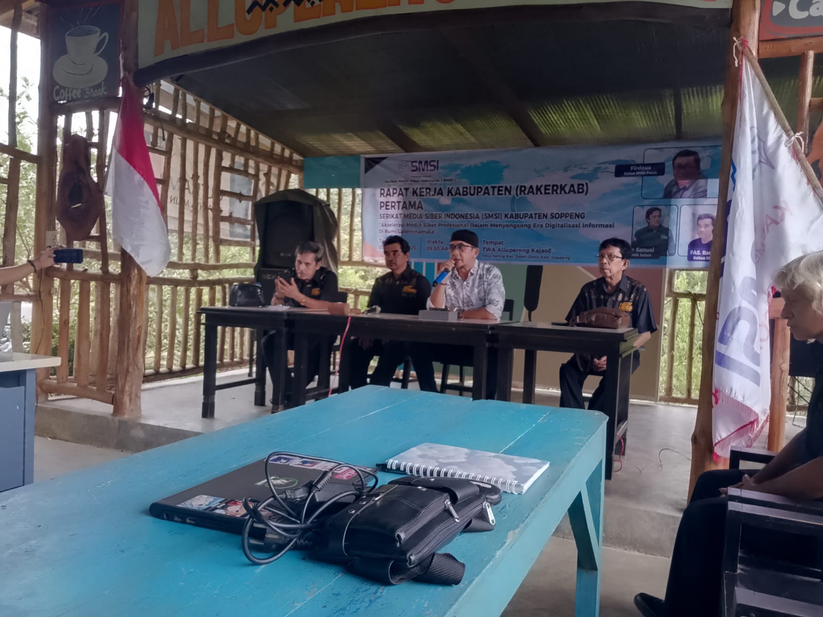 Rapat Kerja Kabupaten (Rakerkab) I Serikat Media Siber Indonesia (SMSI) Kabupaten Soppeng berlangsung di Alluppereng Kajaoe, Sabtu, 7 Februari 2026. Agenda ini digelar ketika produksi berita kian dituntut serba cepat, sementara ruang redaksi semakin bergantung pada logika distribusi digital yang tak selalu sejalan dengan prinsip jurnalistik.