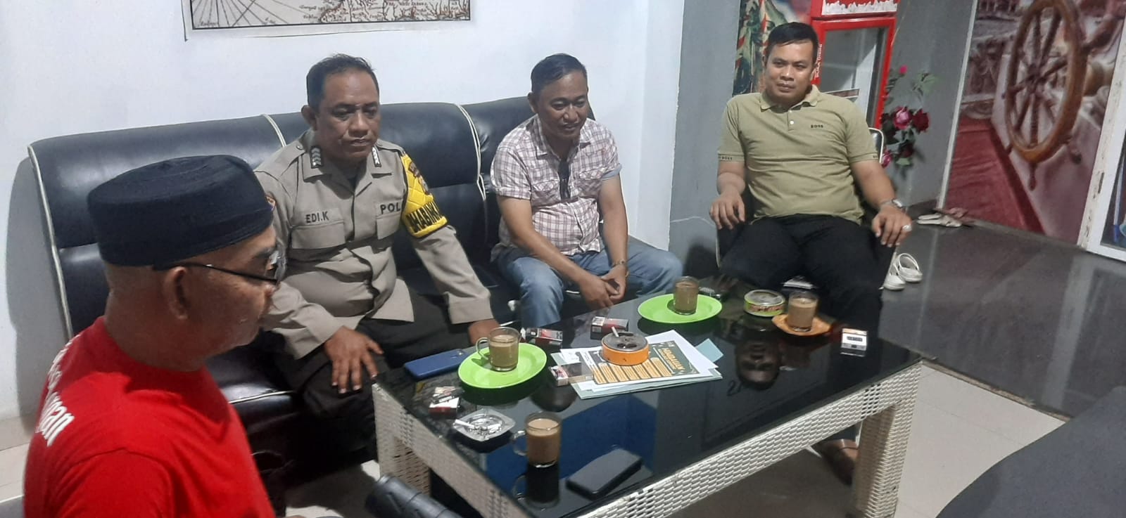 Duduk Melingkar Membangun Harmoni: Bhabinkamtibmas Bripka Edi Kurniawan (kedua dari kiri) saat melaksanakan koordinasi humanis bersama pihak Kelurahan dan pengelola tempat hiburan di wilayah Lalabata Rilau, Senin (2/2). Pertemuan yang berlangsung hangat dengan suguhan kopi ini menekankan pentingnya menjaga kekhusyukan bulan suci Ramadhan melalui kepatuhan terhadap imbauan pemerintah demi terciptanya situasi Kamtibmas yang kondusif. (Foto: Dokumentasi Humas Polres Soppeng)