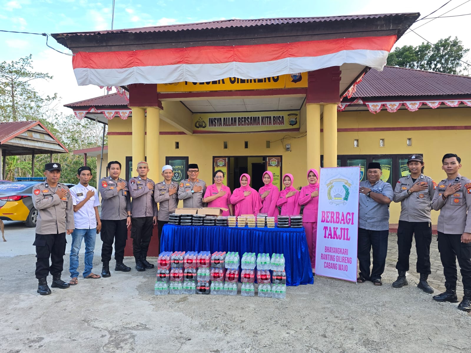 WAJO — Matahari sore itu mulai merunduk malu di ufuk barat Kecamatan Gilireng, menyisakan semburat jingga yang membasuh debu-debu di jalanan. Di depan Mapolsek Gilireng, Selasa (17/3/2026), aspal jalanan seolah berubah menjadi hamparan sajadah panjang tempat pengabdian dan kemanusiaan bertemu.