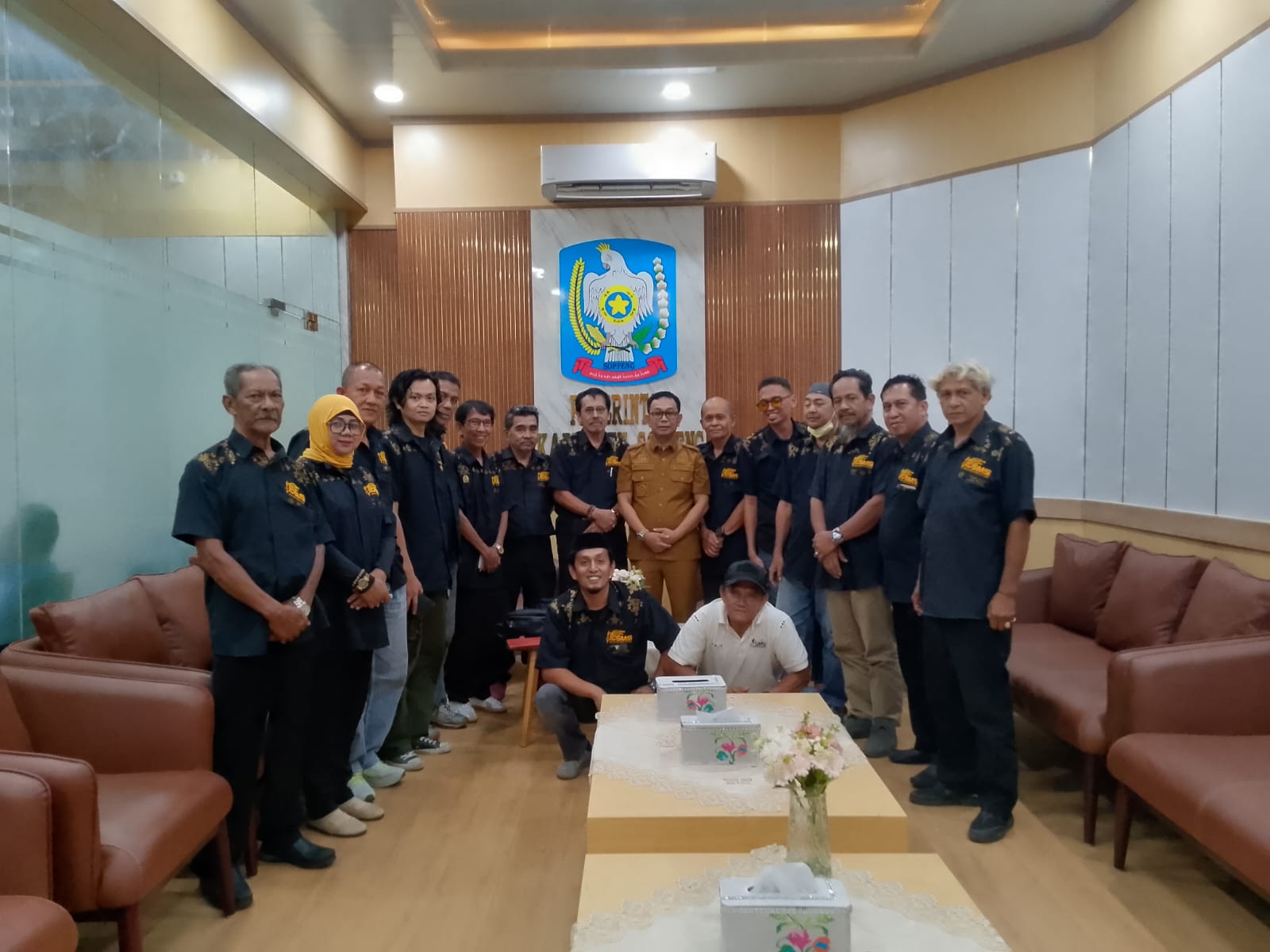 Bupati Soppeng, H. Suwardi Haseng, S.E., berfoto bersama para Pengurus Serikat Media Siber I donesia (SMSI) Kabupaten Soppeng di ruang kerjanya, Selasa, 17 Maret 2026. (Foto: Dokumentasi Humas SMSI Kabupaten Soppeng)