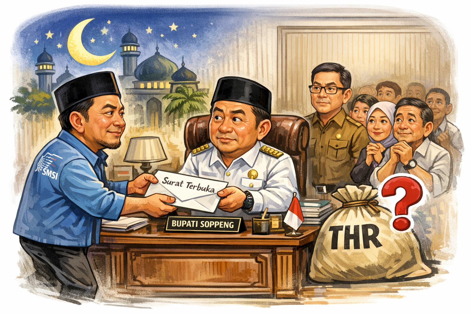 Pada Senin pagi, Ketua Serikat Media Siber Indonesia (SMSI) Kabupaten Soppeng, FAS Rachmat Kami, melangkah ke Kantor Bupati. Ia menyerahkan sebuah surat terbuka melalui Bagian Umum Sekretariat Daerah. Tembusannya juga disampaikan kepada DPRD Kabupaten Soppeng.