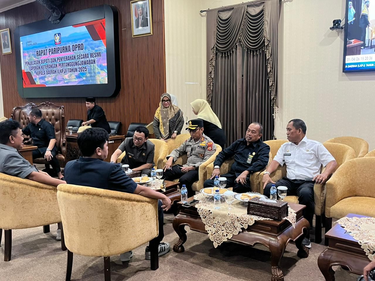 KONDUSIF: Kapolres Soppeng AKBP Aditya Pradana, S.I.K., M.I.K. (tengah, berseragam Polri), saat menghadiri sekaligus memantau langsung pengamanan Rapat Paripurna LKPJ Bupati di Gedung DPRD Kabupaten Soppeng, Rabu (1/4/2026). Sinergitas TNI-Polri dan Pemerintah Daerah memastikan kegiatan berjalan aman dan lancar. (Foto: Dok. Humas Polres Soppeng)