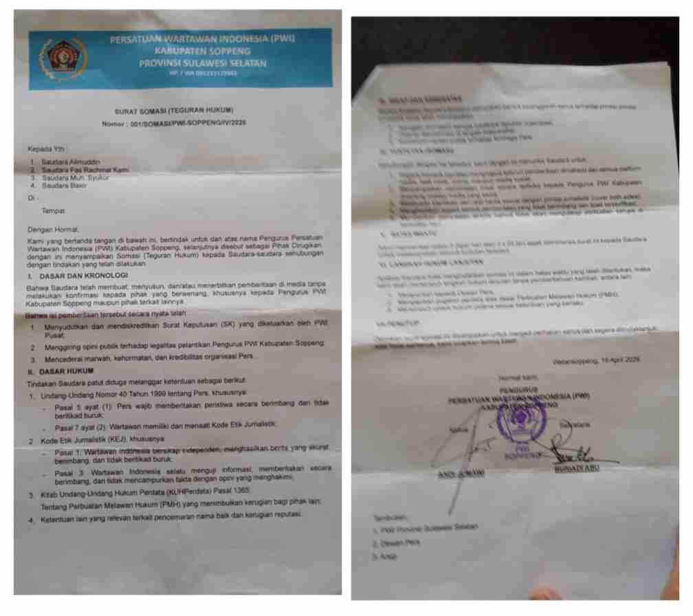 Somasi adalah bagian dari hak setiap pihak. Namun dalam ekosistem pers, klarifikasi berbasis data tetap menjadi jalan utama, bukan tekanan administratif semata.