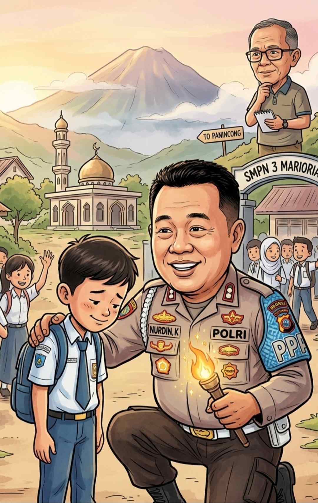 SOPPENG – Di bawah langit Panincong yang teduh, sebuah amanah besar sedang ditunaikan. Bukan tentang deru sirene atau pengejaran raga yang melanggar hukum, melainkan tentang pengejaran jiwa-jiwa muda yang nyaris kehilangan arah. Di sana, di antara aroma tanah dan bisikan angin, Polsek Marioriawa hadir bukan sebagai penegak hukum yang kaku, melainkan sebagai tangan Tuhan yang memulangkan anak-anak bangsa ke dalam ruang-ruang ilmu.