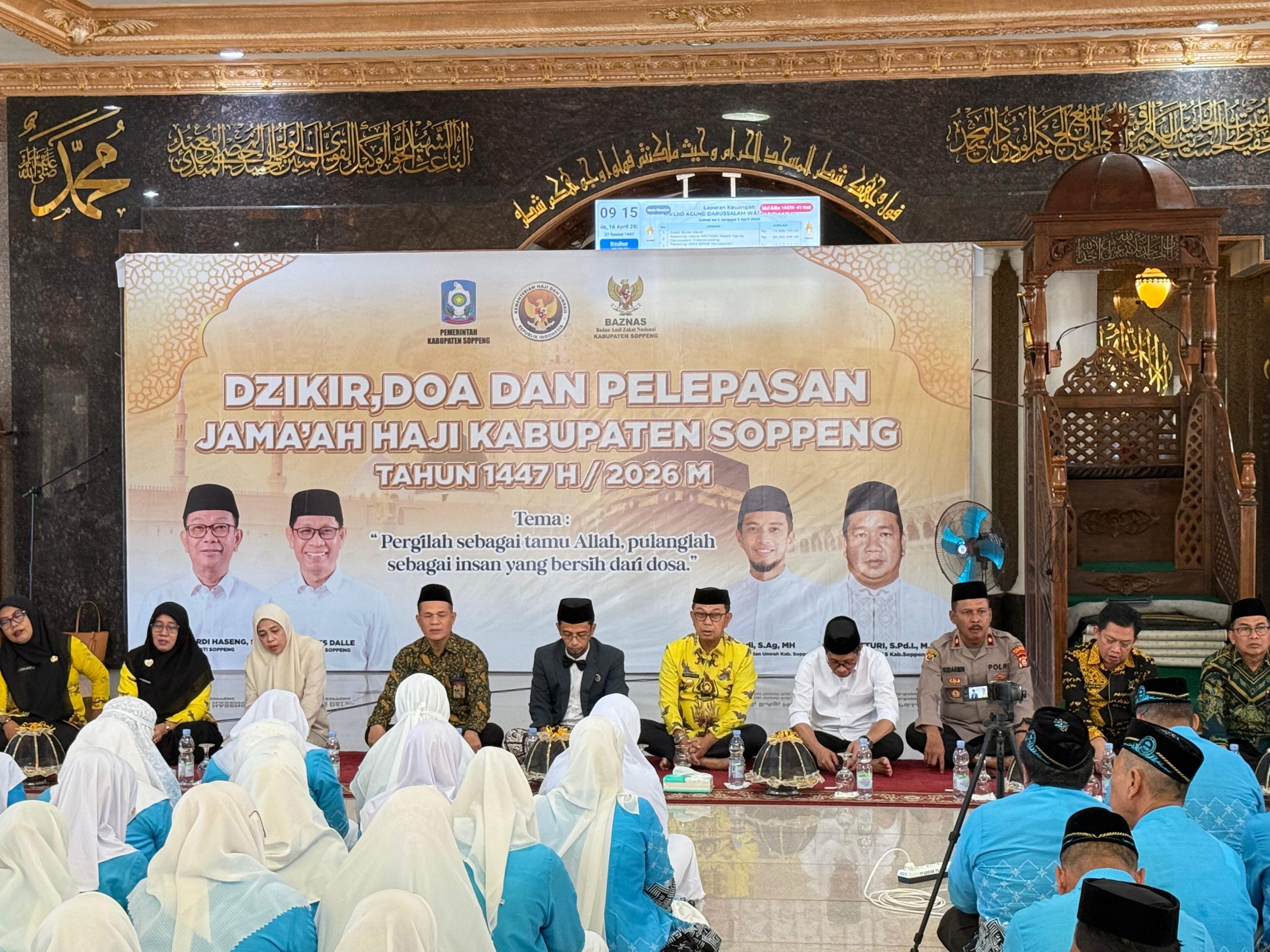 Kamis, 16 April 2026, menjadi saksi sebuah momen sakral: Dzikir, doa, dan pelepasan jamaah haji Kabupaten Soppeng Tahun 1447 H/2026 M. Hadir di tengah suasana penuh makna itu, Wakapolres Soppeng Kompol Sudarmin, S.Sos., bersama Bupati Soppeng H. Suwardi Haseng, S.E., Wakil Bupati Ir. Selle K.S Dalle, unsur Forkopimda, tokoh agama, serta keluarga jamaah.