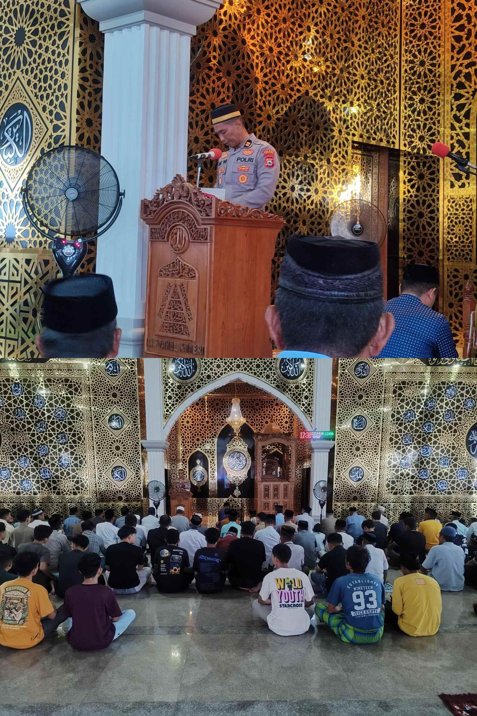 “Keamanan bukan hanya soal patroli di jalan raya, tapi soal bagaimana kita menjaga hati agar tetap tenang saat bersujud,” tutur IPTU Amat Yani di hadapan jamaah yang mendengarkan dengan saksama.