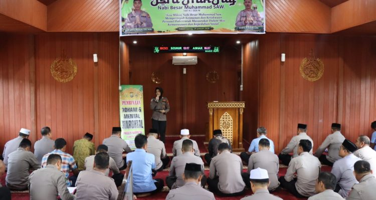 Keterangan Foto:Personel Polres Soppeng mengikuti peringatan Isra Mi’raj Nabi Muhammad SAW 1447