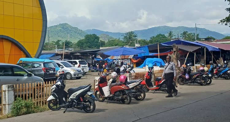 Keterangan Gambar: PAM PASAR: Personel Polsek Marioriwawo melakukan pengamanan dan pengaturan lalu