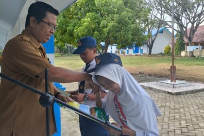 Kepala SMPN 6 Lilirilau, A. Misbahuddin Thahir, S.Pd., M.Pd., saat menyerahkan Piala dan Piagam Penghargaan kepada sejumlah siswa-siswi berprestasi Laporan : Masykur Thahir (Ketua Dewan Redaksi) Soppe...