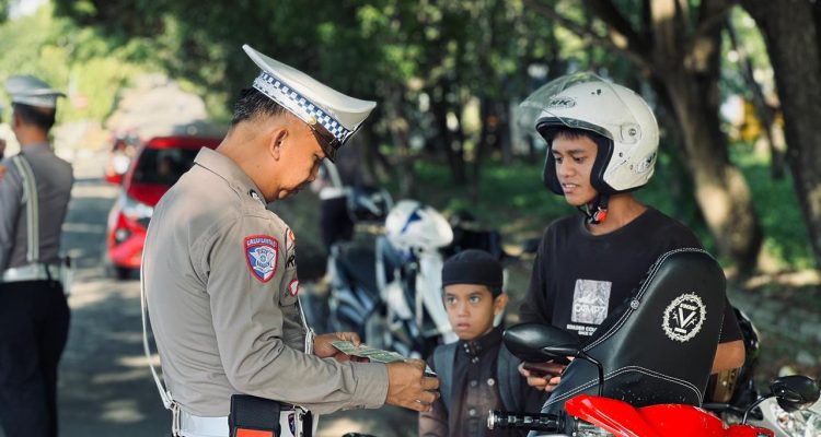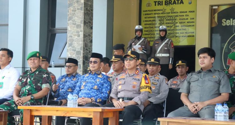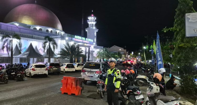 Keterangan Gambar: Anggota Sat Lantas Polres Wajo berjaga di depan Masjid Raya